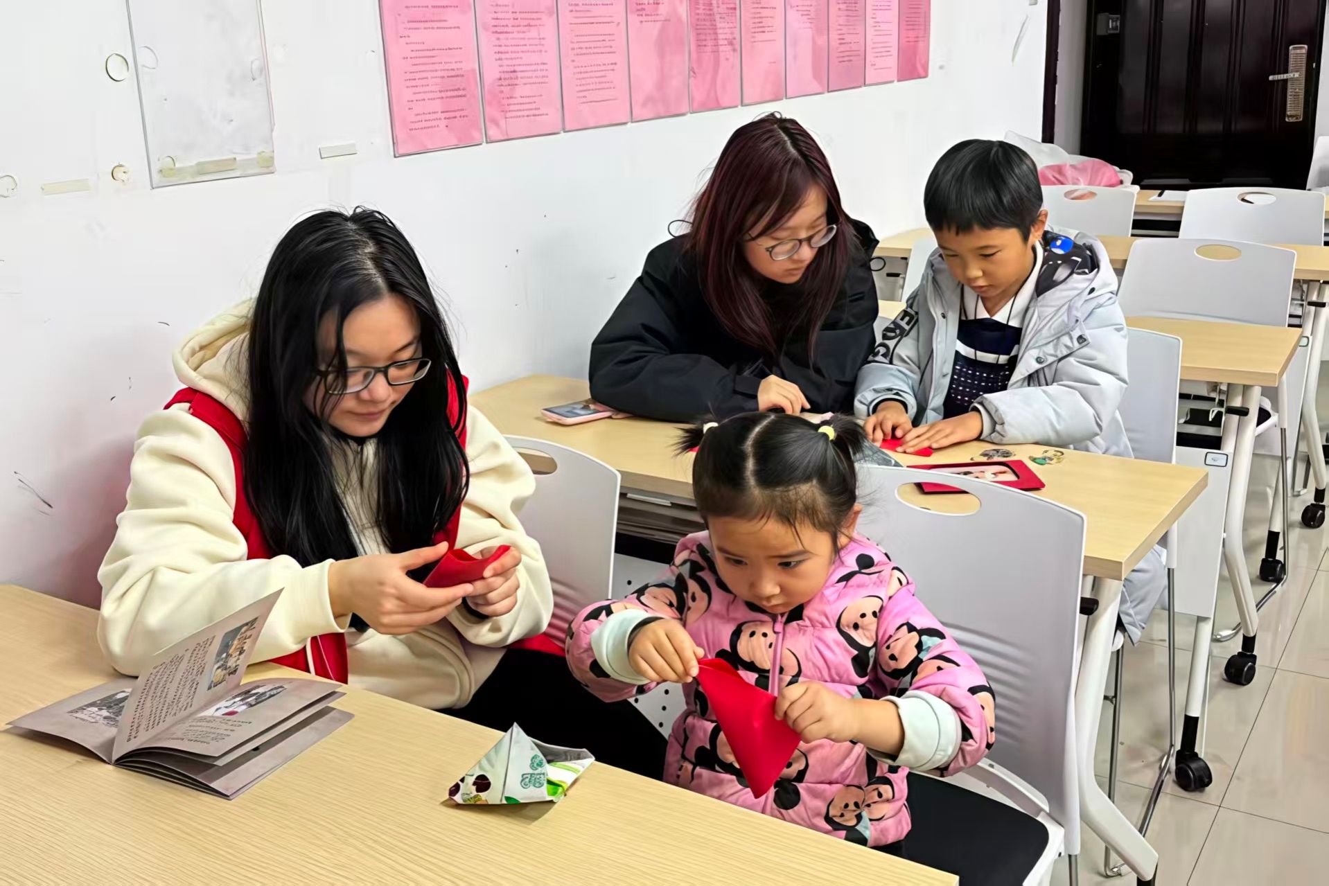 期间,主讲人围绕文化书社等湖湘党史核心细节,设计党史问答、剧本朗读、“白果妇女闹祠堂”场景辨识等任务,激发小朋友们对湖湘红色文化的探索热情。手工环节中,小朋友们在志愿者的协助下折制红色千纸鹤并题写寄语。制作完成后,小朋友们依次展示作品并表达对革命先辈的崇敬之情。