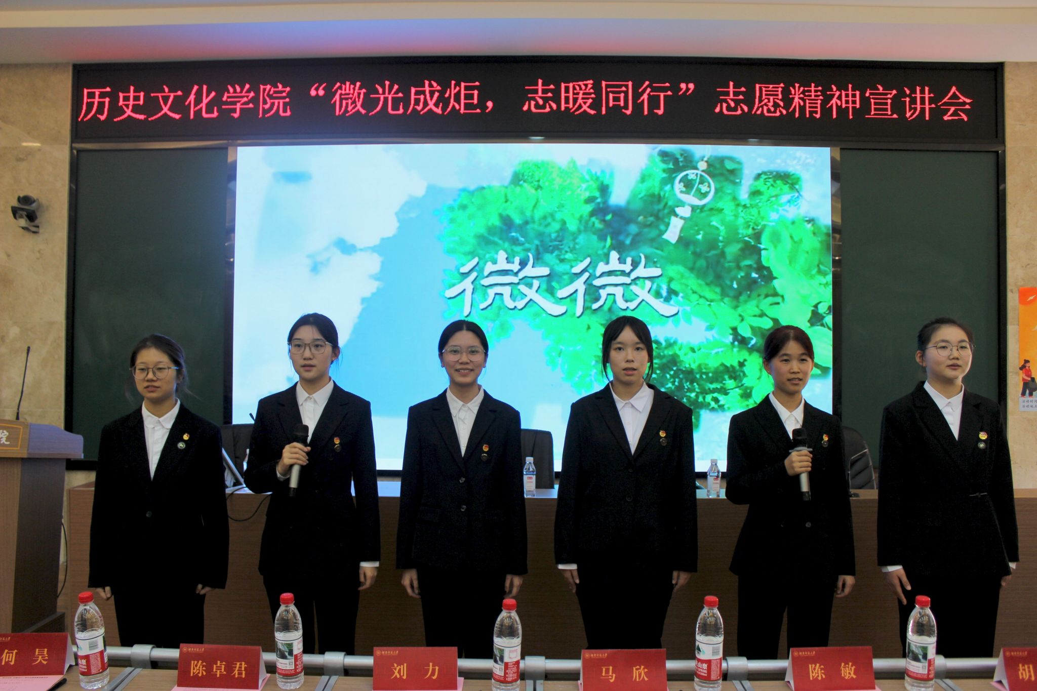(通讯员 朱睿君 顾藩)12月1日下午,历史文化学院“微光成炬,志暖同行”志愿精神宣讲会在历文院文渊楼203学术报告厅举行。长沙天倪庐景区(时务学堂故址)主理人刘力、历文院党委副书记马欣、历文院团委书记陈卓君、历文院学工办主任陈敏、历文院学工办老师何昊、胡思琦出席会议,2025级全体学生参会。