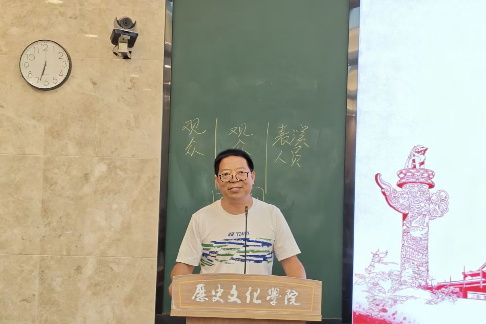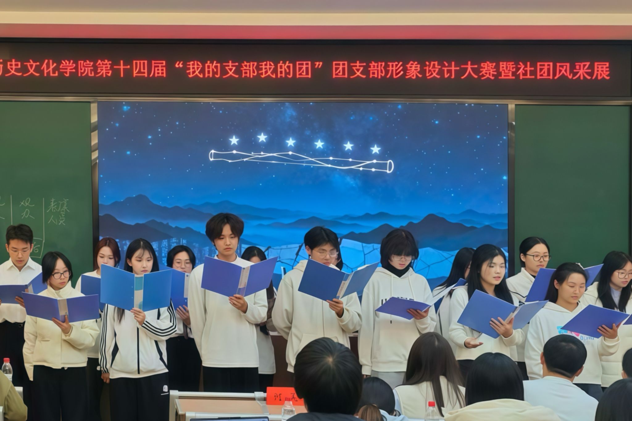 历文院四大社团团支书根据自身社团特点,依次从组织建设、宣传建设等多个方面进行相关介绍和说明。春秋学社以风雅的短片串联社团介绍,展示社团近一年的发展,合唱歌曲《红昭愿》;觅美工艺社重点介绍了手工艺制作与传承活动,以及“访旧址忆峥嵘岁月,悟今朝争做有志青年”团日活动,展演歌舞《我的未来式》;食尚协会展示了过去一年的获奖情况及与北京瓷娃娃罕见病研究中心的公益合作,并带来情景剧《食尚协会招新了》;文物爱好者协会总结过去一年中举办的文物拓印体验和文物表情包大赛等多项活动,并带来原创朗诵《笛映山河》。社团展示结束后,向常水进行活动总结,就此次活动的顺利开展表示肯定,并对各社团未来工作提出要求和期待,希望各社团能够持续进步、不断创新,共同书写更加辉煌的篇章。