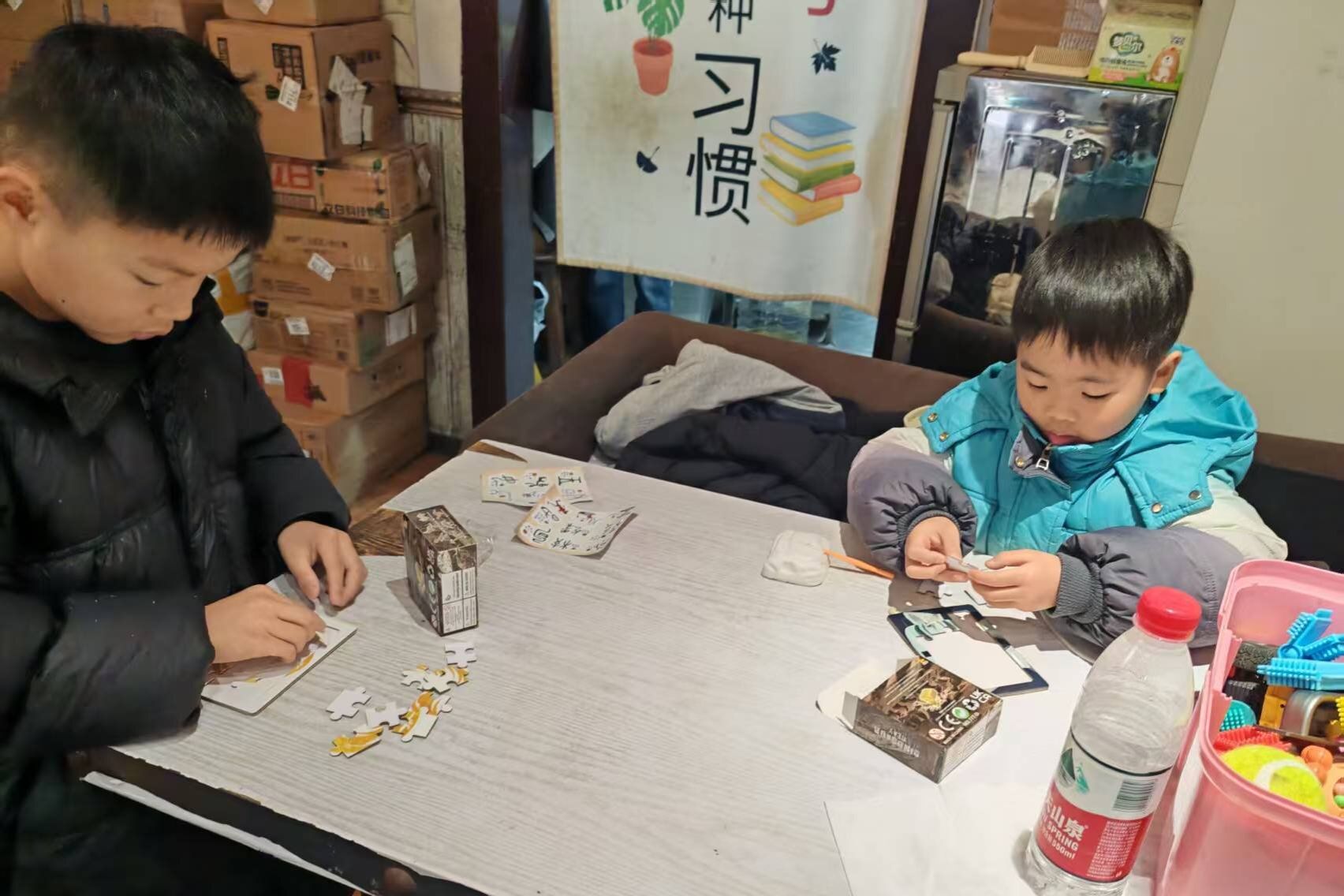 活动开始之前,志愿者们提前准备文物拼图、考古盲盒、陶瓷和甲骨文贴纸等道具,并查阅专业知识,制作宣创海报。活动伊始,志愿者们提前十分钟到达湖南师范大学天马学生公寓集合,并根据个人意愿和能力将参与人员和道具分成三组。三个小组分别负责考古知识的传授、拼图中三星堆知识的传搜以及甲骨文和陶瓷知识的传搜。活动全程志愿者们注重细节、劳动认真、配合默契,用实际行动展现青年学子精神风貌。凭借专业能力,用简洁易懂的语言,向儿童们科普文物知识。
