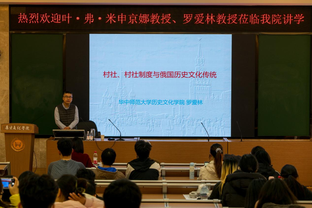 (通讯员 李嘉鼎 马林林)2025年12月3日,湖南师范大学历史文化学院“名家学术讲座”第19讲在文渊楼203举行。本次讲座特邀华中师范大学历史文化学院博士生导师、中国苏联东欧史研究会副会长罗爱林教授担任主讲嘉宾,讲座主题为“村社、村社制度与俄国历史文化传统”。讲座由副院长傅新球教授主持,学院本科生、研究生及教师共百余人聆听了学术报告。