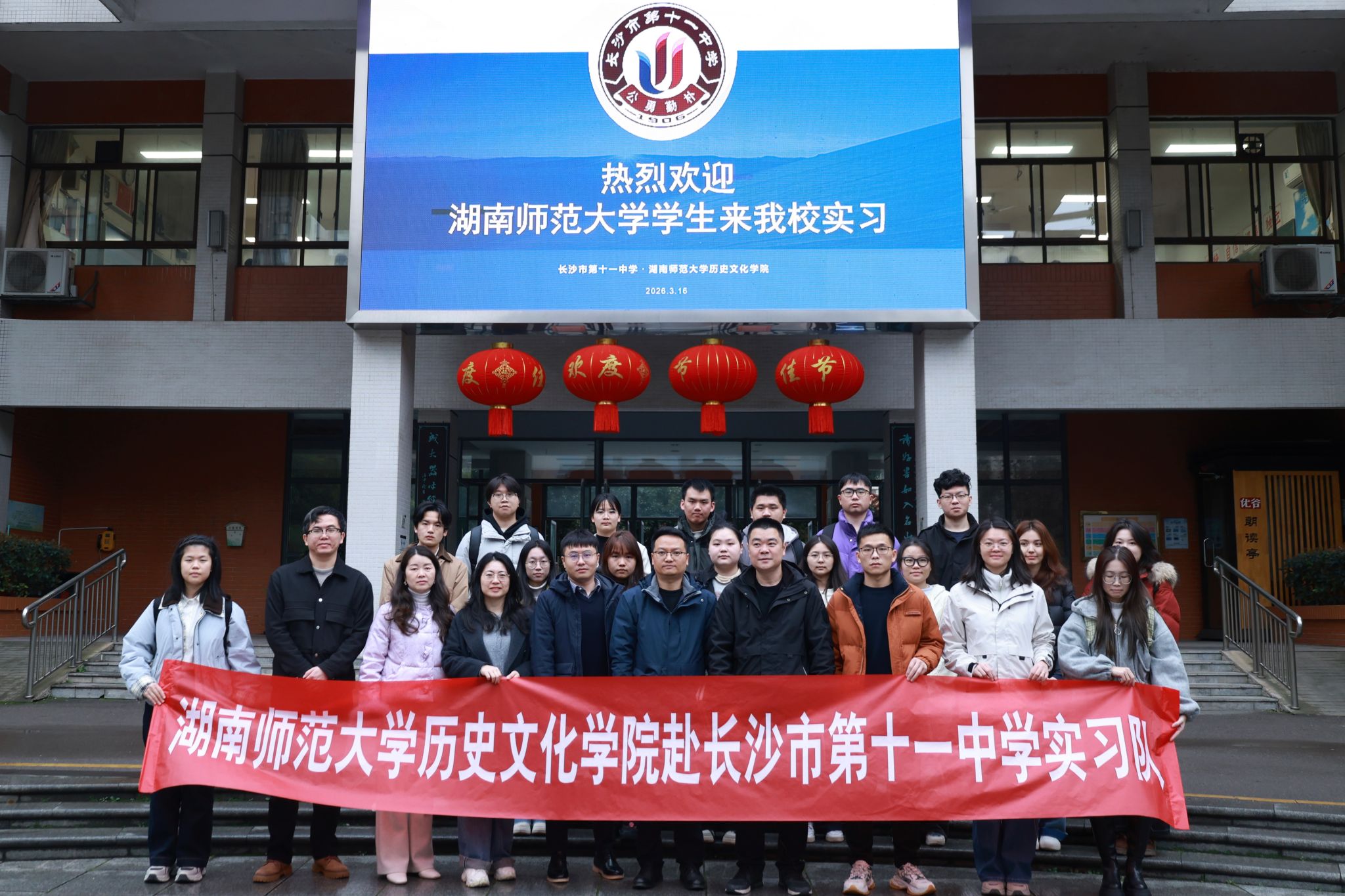 最后,教务办主任王志文就具体实习安排进行详细部署,围绕课程对接、备课指导、听课评课、班主任工作等方面进行细致说明,并介绍了各学科指导老师的基本情况,为后续实习工作的有序开展搭建了清晰框架。会后全体成员至学校广场共同合影留念。此次见面会为实习队与实习学校搭建了良好的沟通桥梁,明确了实习工作的方向与要求,为接下来的教育实习奠定了坚实基础。