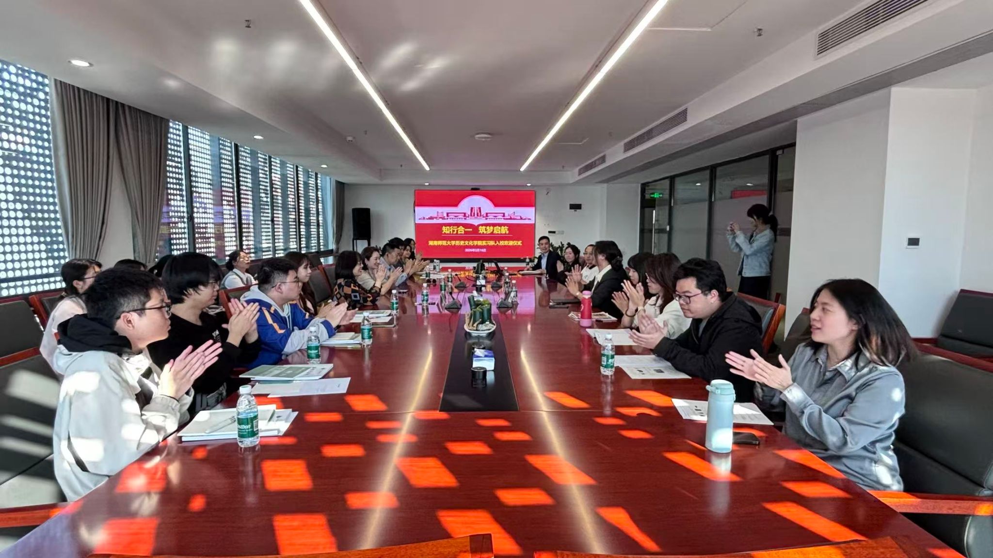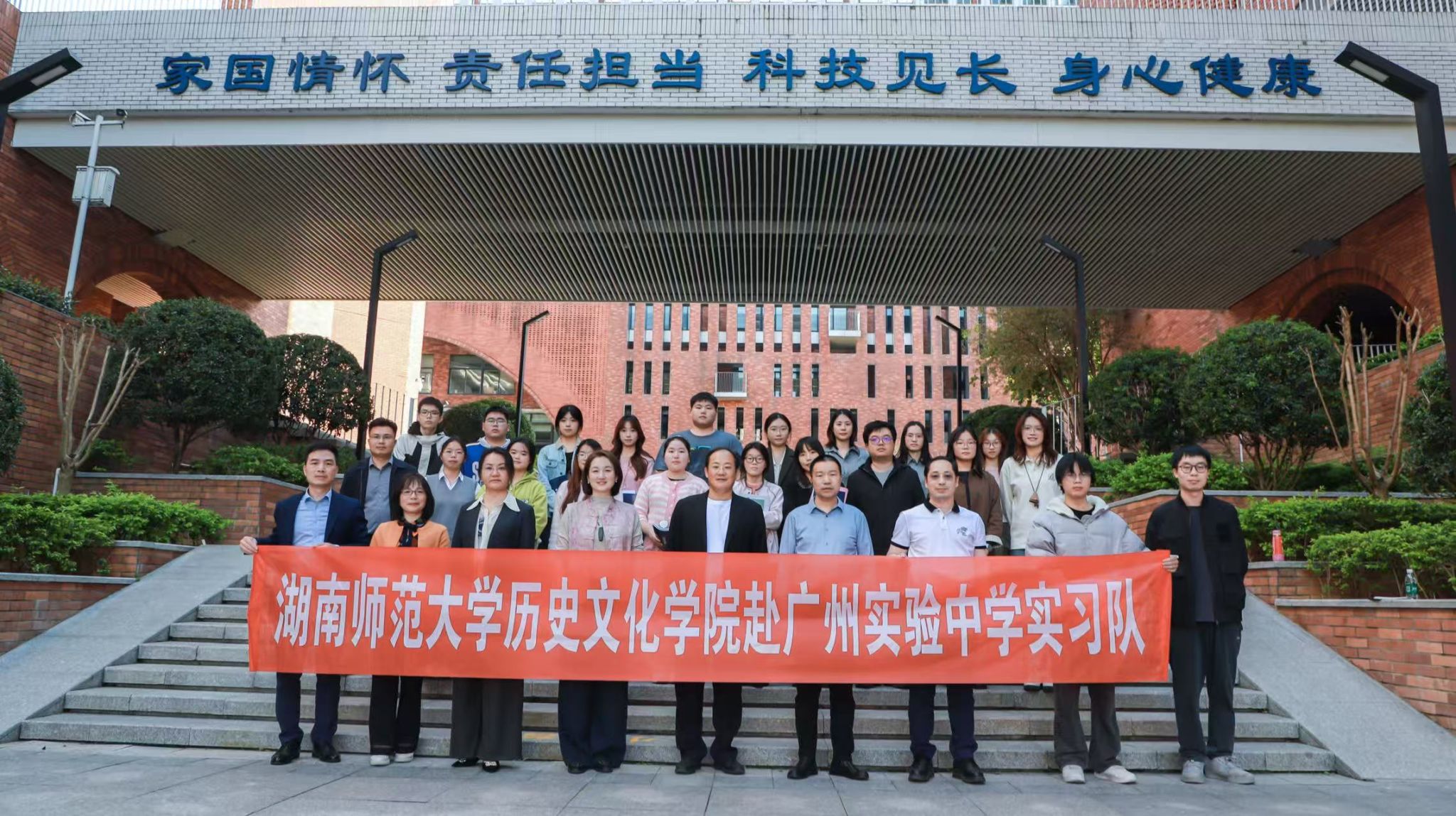 (通讯员 林芳 唐羽)2026年3月16日,湖南师范大学历史文化学院2023级广东实习队赴粤开展为期两个月的教育实习工作,19位实习生分别对接广州实验中学和广东仲元中学附属学校。历史文化学院党委副书记(主持党委日常工作)彭露、副院长黎天宇、副院长兼广东实习队指导老师傅新球和两所学校校领导、指导教师以及全体实习生参加了两校的实习见面会。