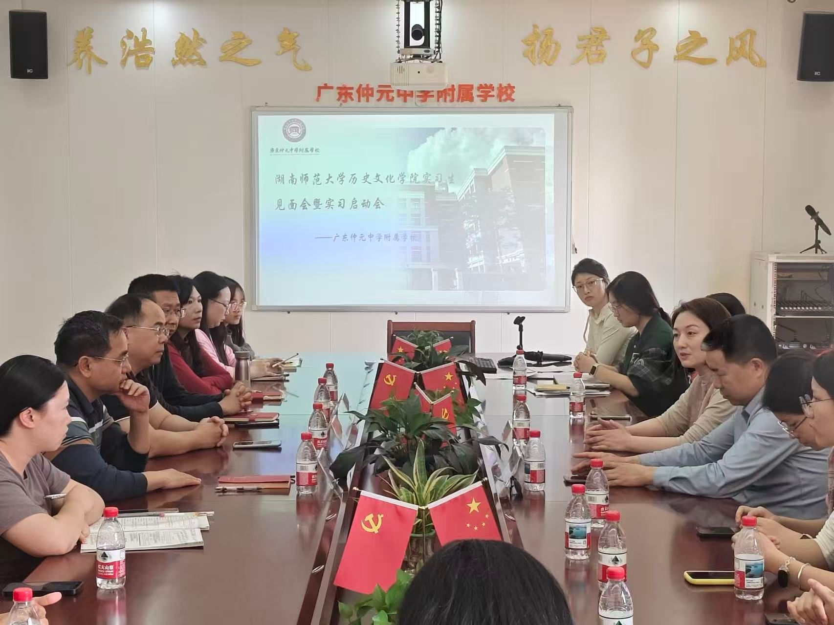 当日下午2点,广东仲元中学附属学校实习见面会在至正楼408会议室召开。校长谭方亮对湖南师范大学历史文化学院实习分队的到来表示热烈欢迎,详细介绍了学校的基本概况、办学特色与发展现状,同时表达了对深化校地合作、协同培育优秀教育人才的深切期待。