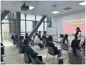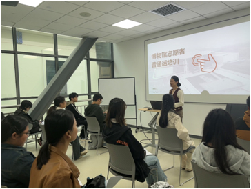 本次招募受到校内外文博爱好者广泛关注与积极响应。为提升志愿者服务能力与专业认知,博物馆特邀湖南省博物馆教育员彭靖岚、优秀志愿者李莎以及本馆馆员张彭程,就礼仪规范、文物知识等内容对志愿者进行了系统培训。