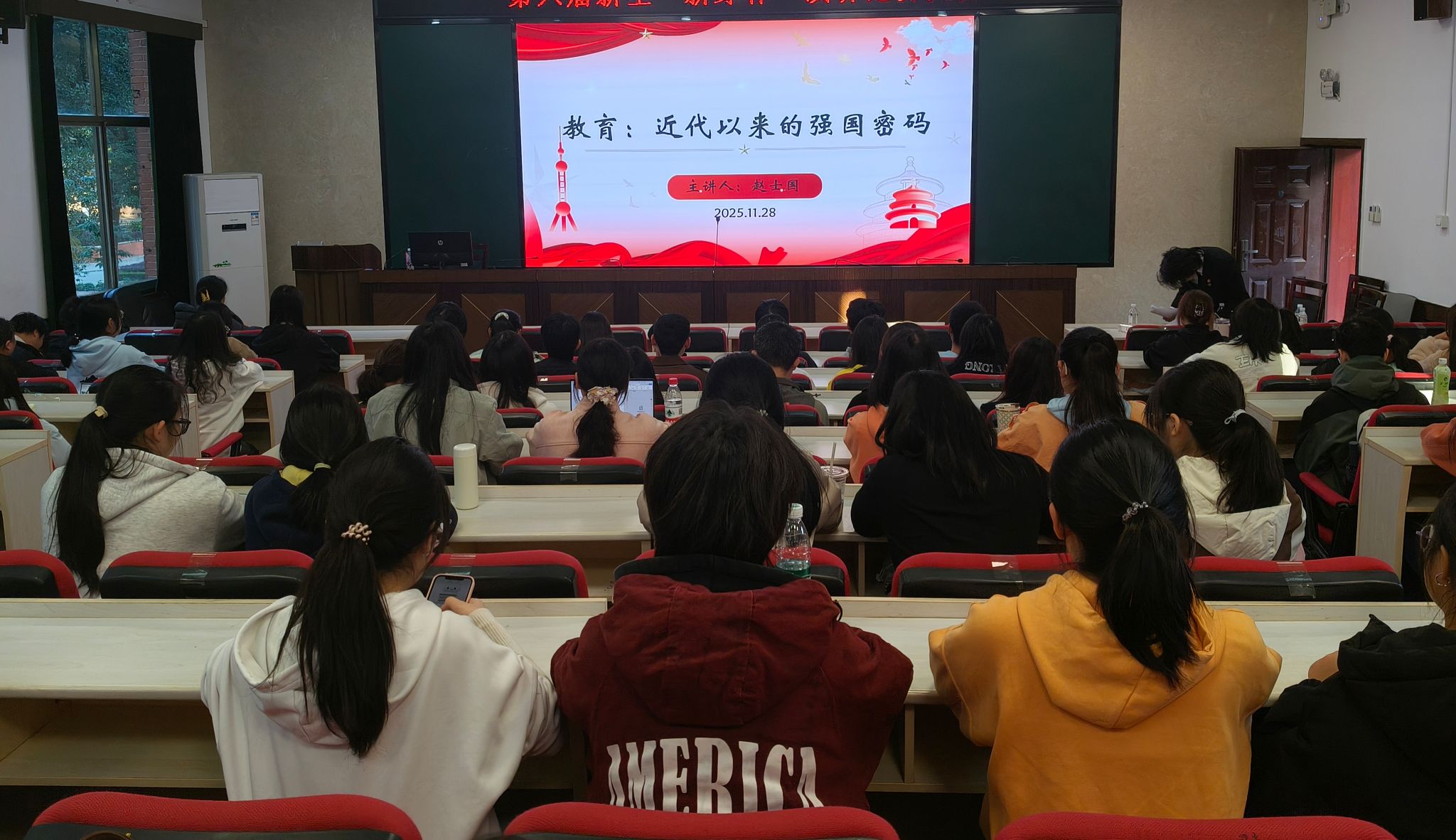此次讲座以理论联结实践,将教育从支撑国家发展的幕后力量推为引领发展的核心动力,既让同学们直观感受到“教育即国运”的分量,也为青年成长锚定了方向。