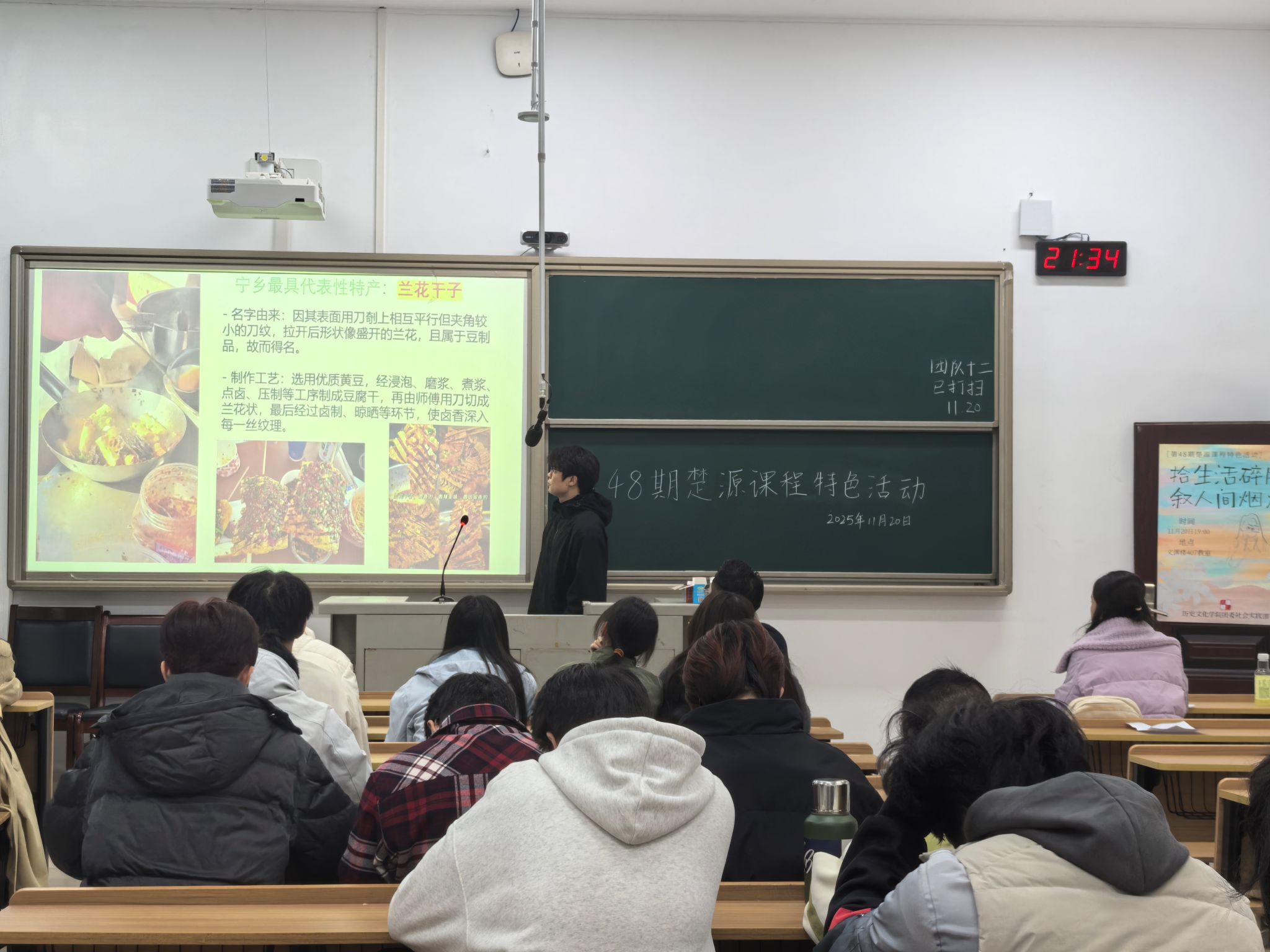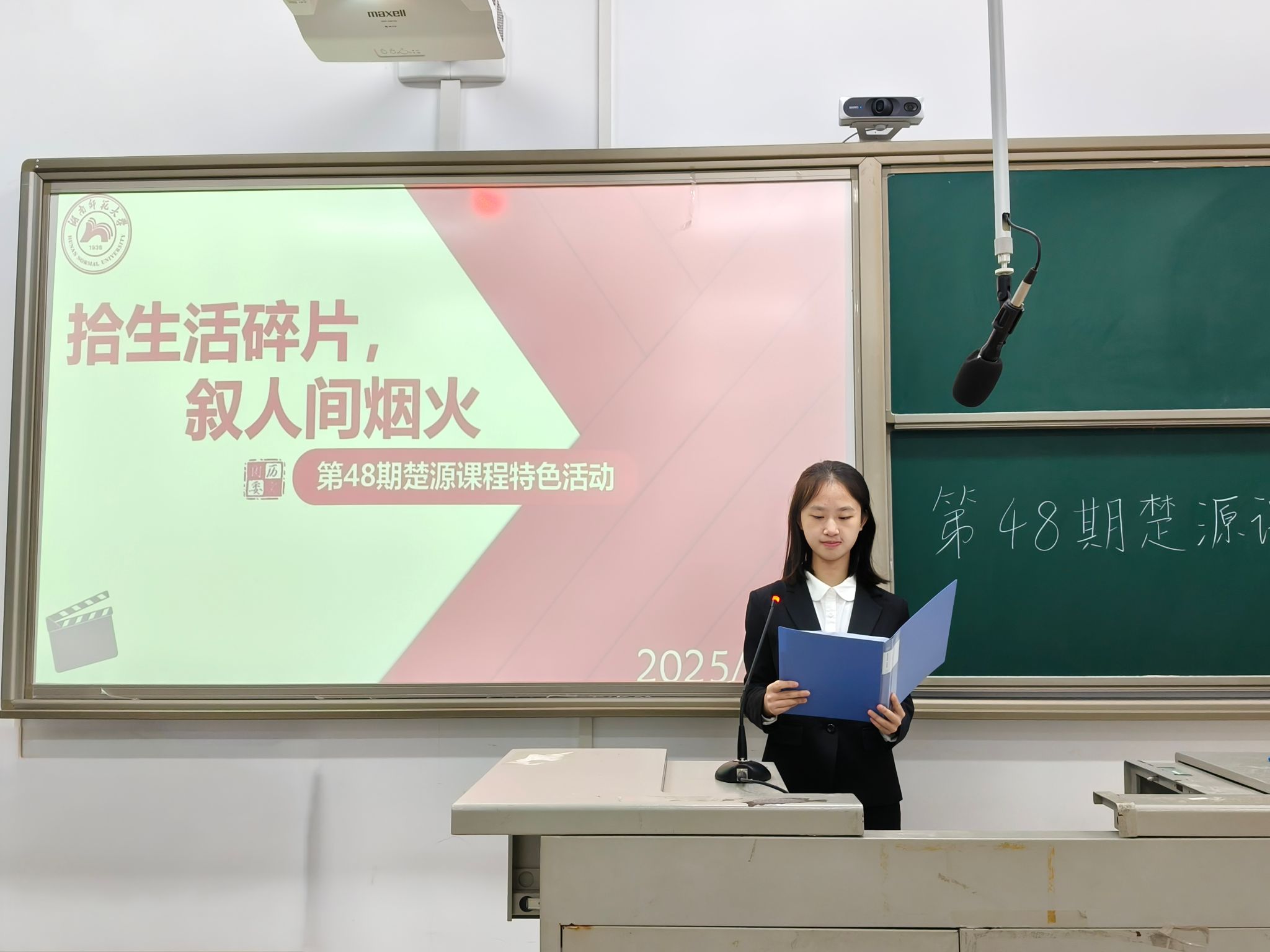 (通讯员 周恩菲 罗思洋)11月20日晚,历史文化学院团委社会实践部于文渊楼407教室开展以“拾生活碎片,叙人间烟火”为主题的楚源课程《优秀历史纪录片》特色活动。院团委书记、陈卓君授课老师李明楠以及全体学员参加此次活动。