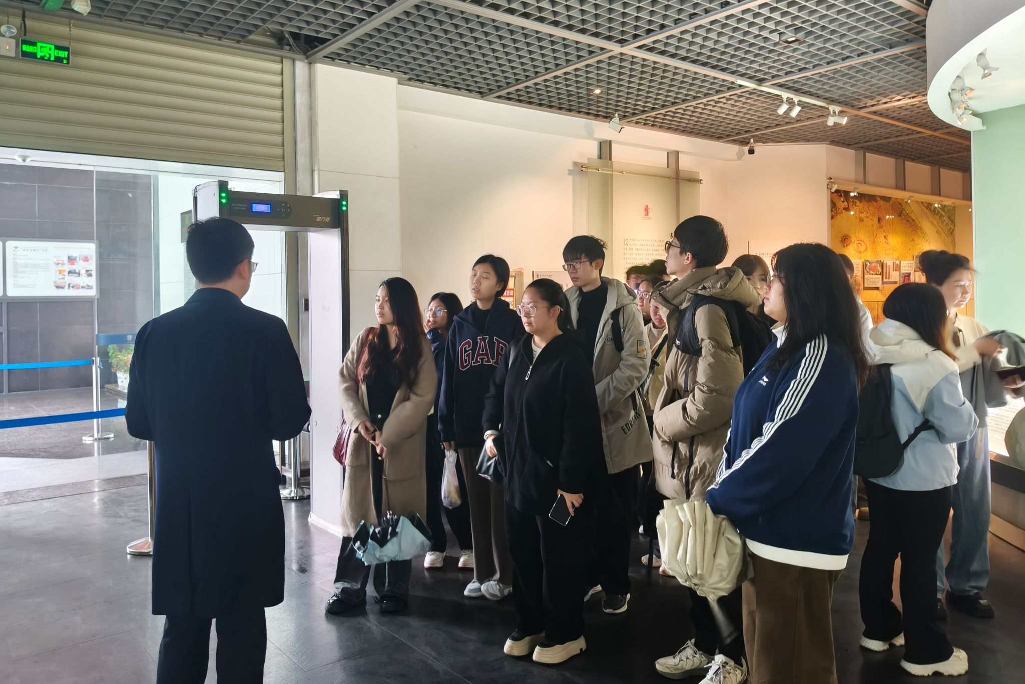 活动伊始,历文院青工部第二负责人顾藩带领志愿者到达会议室。简牍博物馆志愿活动的培训负责人李伟老师介绍了博物馆的基本信息,包括馆史、志愿服务团队组建以及志愿者守则等,并向志愿者说明了服务过程中的注意事项和工作岗位的具体安排,同时解答了志愿者的疑问。最后,志愿者们在讲解员的带领下走进展厅,对博物馆的基本陈列、馆内环境、设施布局以及文化理念进行基本的了解。