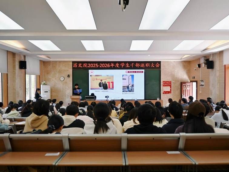 (通讯员:赵奇奇 刘丰源)4月1日中午,历史文化学院2025~2026年度学生干部述职大会于文渊楼203学术报告厅召开。院学工办主任陈敏、院学工办老师胡思琦出席会议,院团委书记陈卓君线上参会,由各班班长、团支书、及学生代表组成民主评议团全程参会。