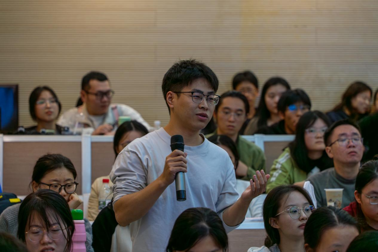 在互动环节中,同学们踊跃提问,从史料建构的方法论,到美苏在种族话语权上的宣传博弈,问题兼具深度与现实关怀。谢教授耐心回应,指出研究者需克服畏难情绪,广泛搜集材料、关注边缘史料,并始终保持创新的思维与视角。他特别指出,其研究重点不在于评估美国宣传对第三世界的具体影响,而在于揭示这种对外叙事如何“反哺”美国国内的黑人民权运动,展现出历史研究中“回望与内省”的独特张力。