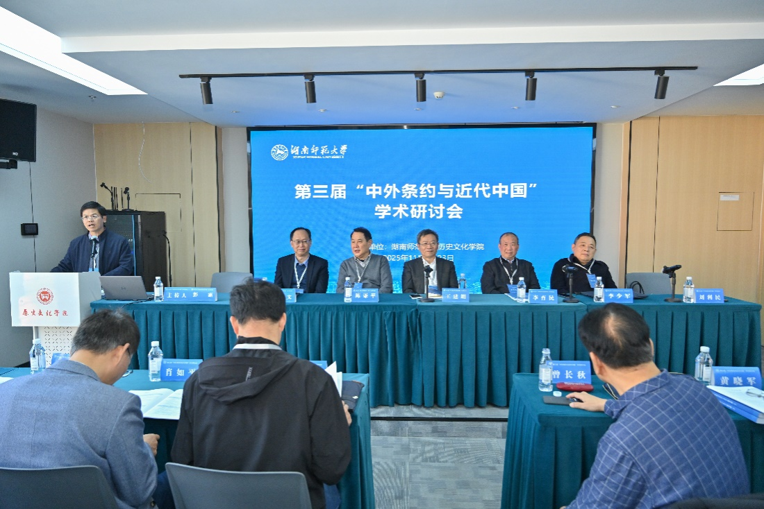 (通讯员李嘉鼎)2025年11月21—23日,由湖南师范大学历史文化学院主办的第三届“中外条约与近代中国”学术研讨会在湖南长沙成功举办。来自中国社会科学院、清华大学、南开大学、南京大学、武汉大学、中山大学等数十所高校和科研机构的八十余名专家学者齐聚一堂,围绕中外条约与近代中国这一主题展开深入研讨。