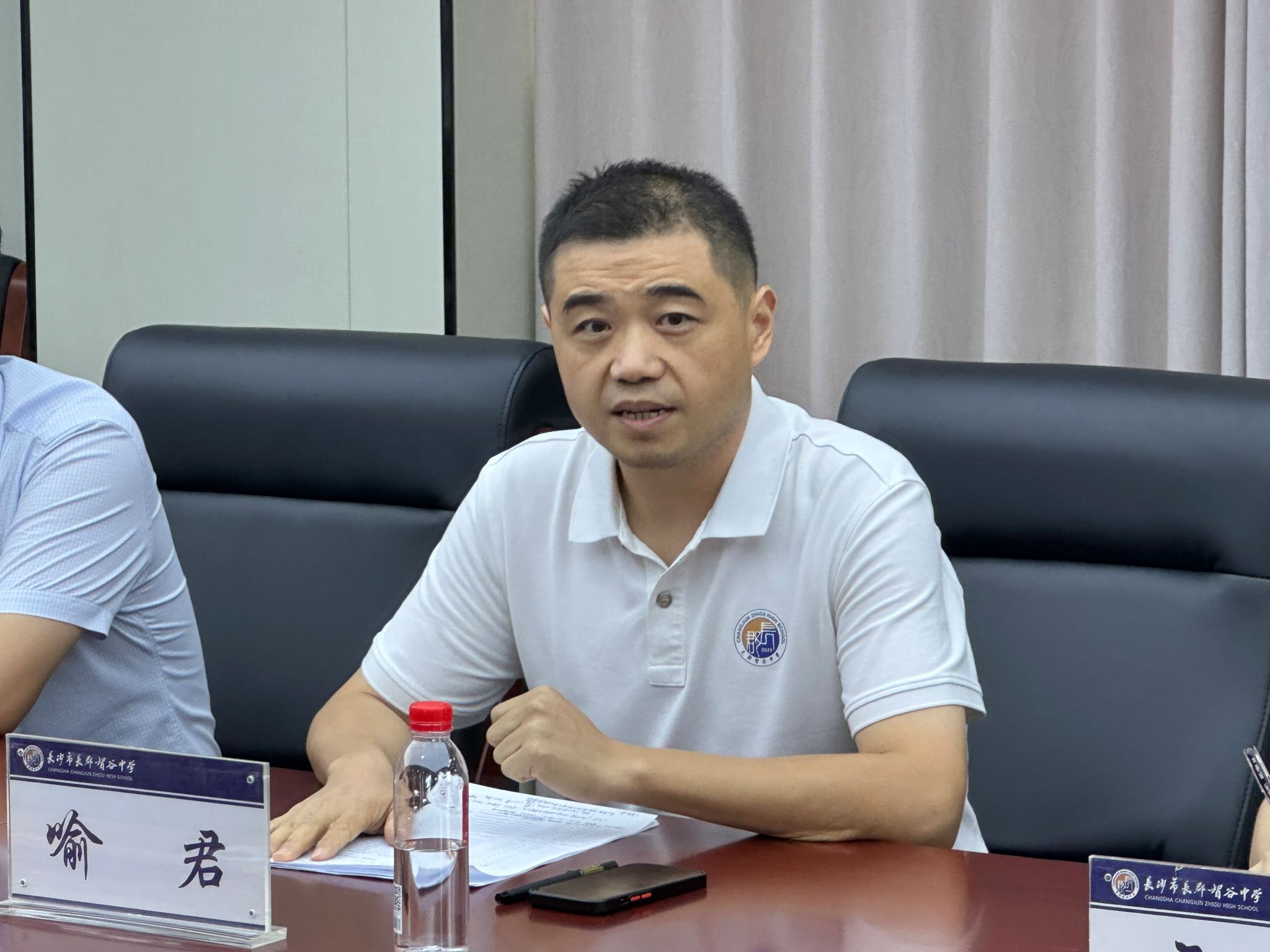 会议伊始,长郡智谷中学副校长喻君代表学校对湖南师范大学历史文化学院领导老师和实习队的到来表示欢迎,强调此次合作是长郡智谷中学与历史文化学院之间的首次实习交流,学校高度重视并全力支持,并就历史学科教学、班主任工作实践和最终考核等环节作出了具体安排,以师徒结对的方式为每位实习生配备经验丰富的指导教师,贯穿备课、听课、上课及班级管理各环节。喻校长还特别提出三点期望:保障安全,确保实习全程平稳有序;勤于实践,扎实提升教学与管理能力;主动融入,积极参与校园活动。