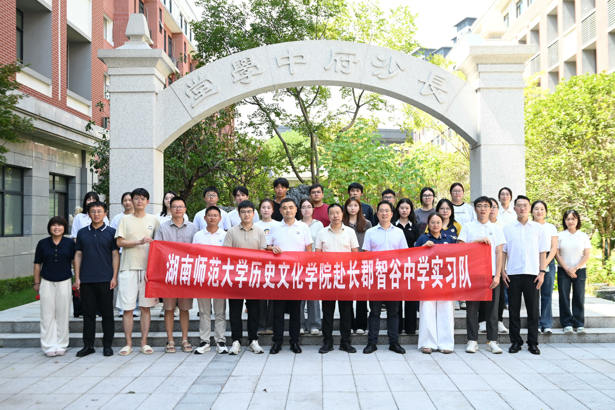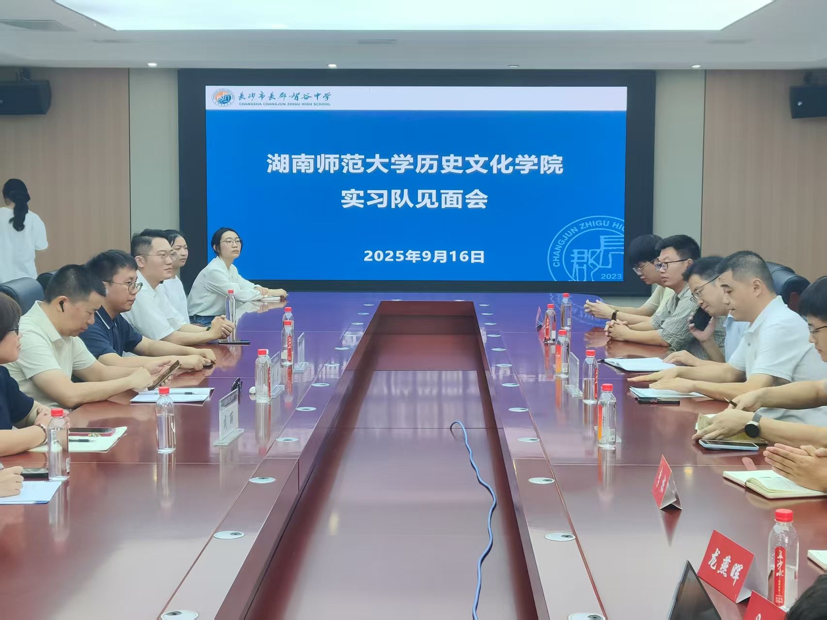 2025年9月16日,在湖南师范大学历史文化学院副院长黎天宇、实习总负责老师成丽及指导老师陈昊、李明楠的带领下,湖南师范大学历史文化学院第一实习队共20名实习生赴长郡智谷中学,于该校行政楼301会议室举行实习见面会。