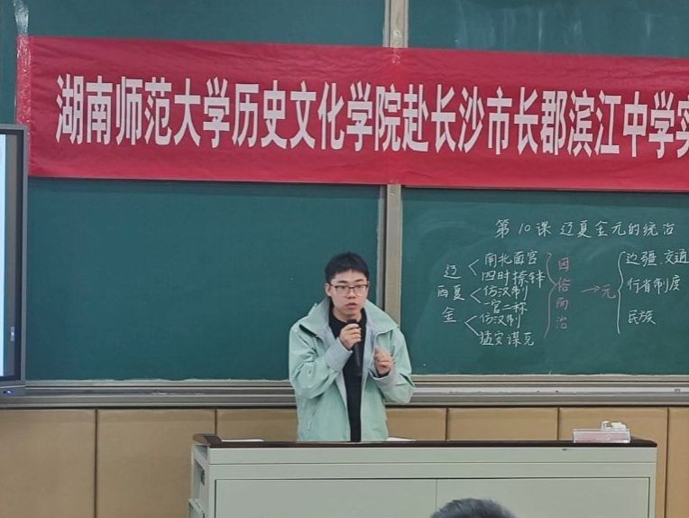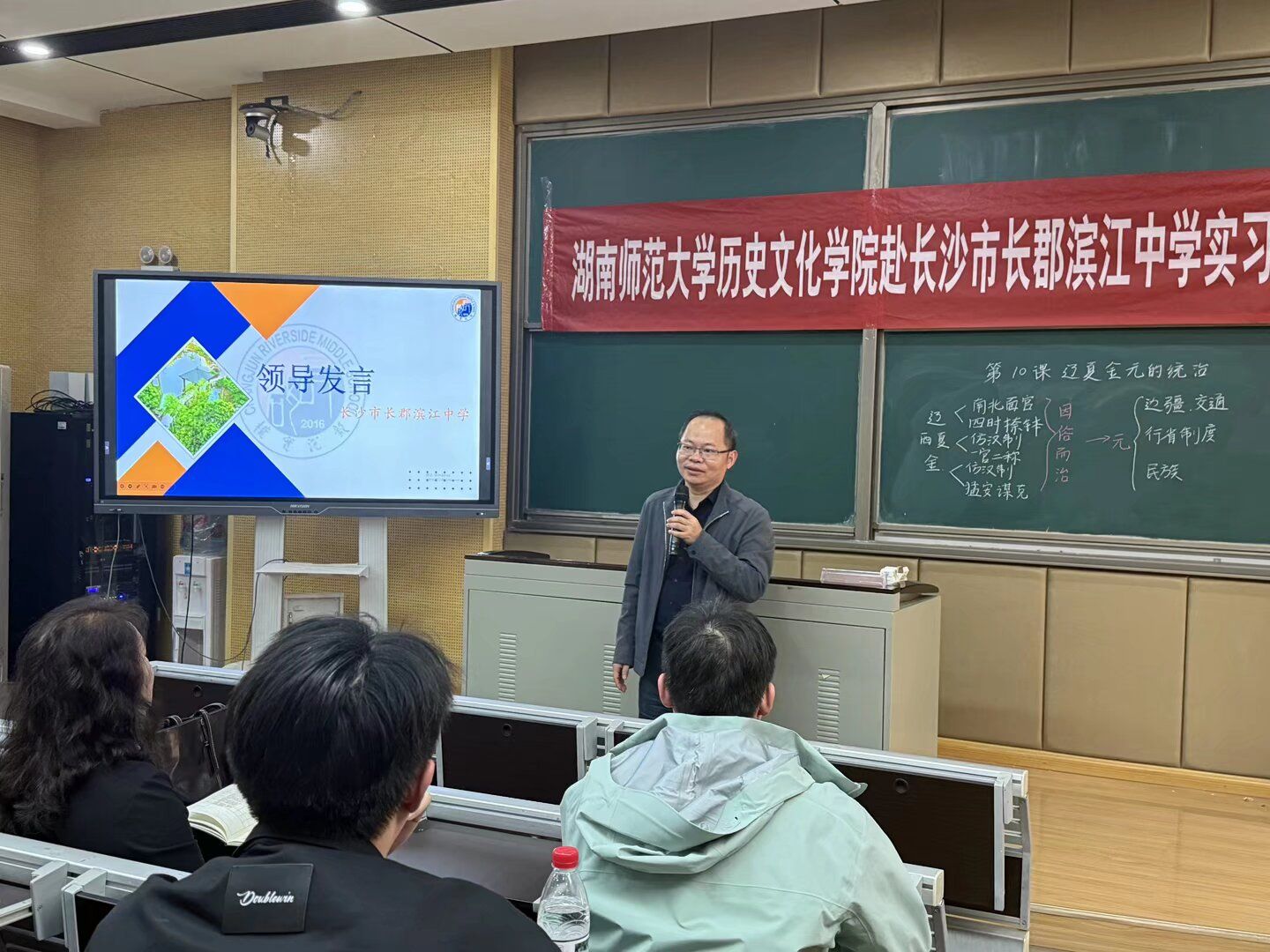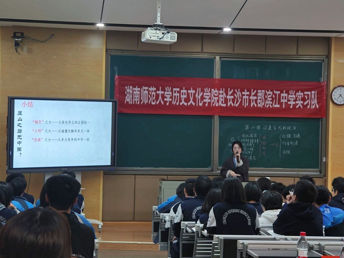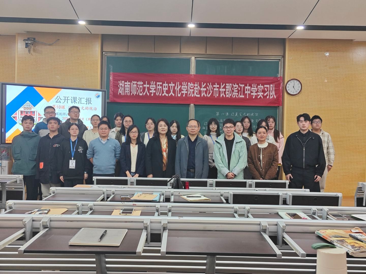 (通讯员:吴冰玉 吴星星)11月5日下午,历史文化学院2022级赴长郡滨江中学实习队在长郡滨江中学四教五楼阶梯教室举办了一场富有成效的公开课汇报活动。本次活动不仅是对实习生们两个月来教学实践成果的一次集中检验与精彩展示,更全方位展现了他们扎实的专业素养和日趋成熟的教学技能。此次汇报的成功举办,也标志着我院与长郡滨江中学在协同育人方面的合作取得了又一实质性成果。
