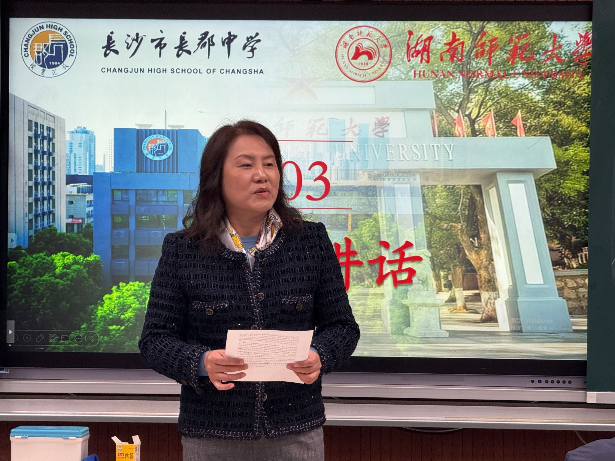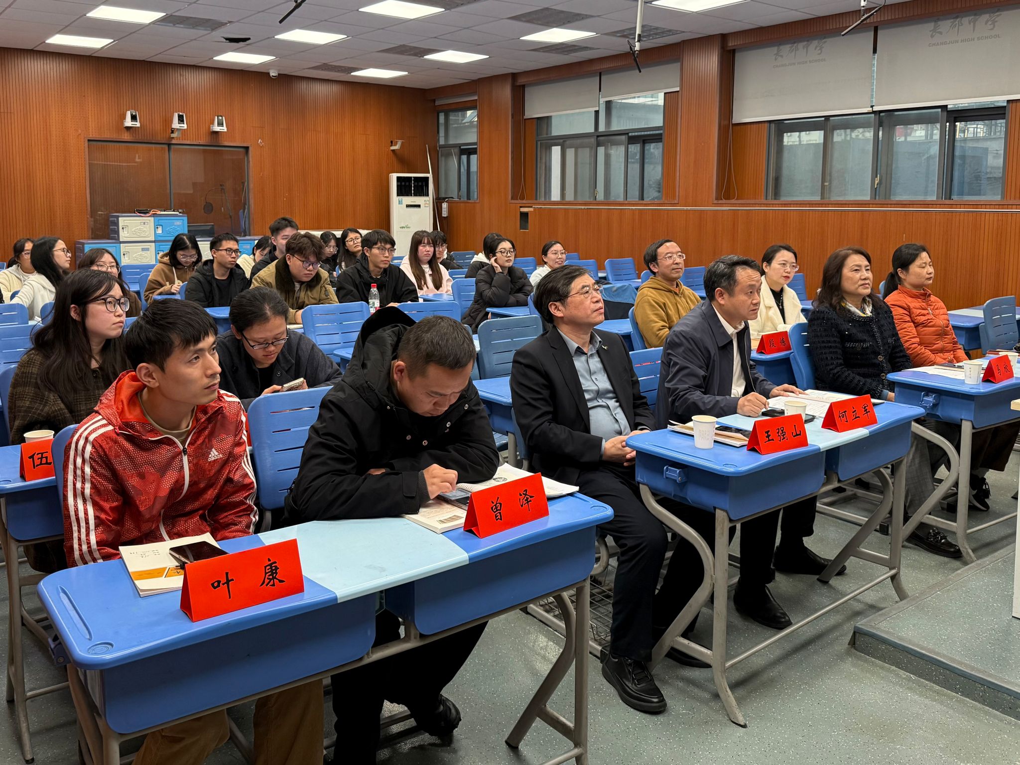 (通讯员 苏飞炀 梁海梅 彭丹)11月26日下午,湖南师范大学历史文化学院2022级赴长郡中学实习队开展公开课暨汇报研讨会活动。院党委副书记马欣、教务办主任代兴莉、团委书记陈卓君、实习队指导老师段炼以及长郡中学党委委员、党政办主任何立军,历史教研组组长王强山和历史教研组曾泽、安岚、叶康、伍文玥等老师莅临指导。