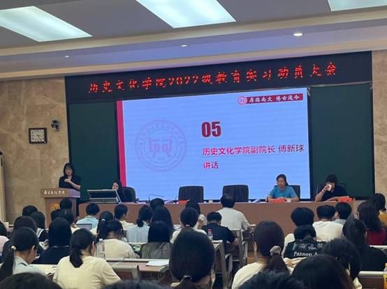 (通讯员 徐琳 高晶晶)9月11日下午,历史文化学院于文渊楼202、203学术报告厅召开2022级实习动员大会。历史文化学院党委副书记(主持日常工作)彭露,历史文化学院副院长傅新球,教务处代兴莉和历史文化学院实习总负责人、教学法教研室主任成丽出席此次会议,全体指导老师和2022级全体学生参加。