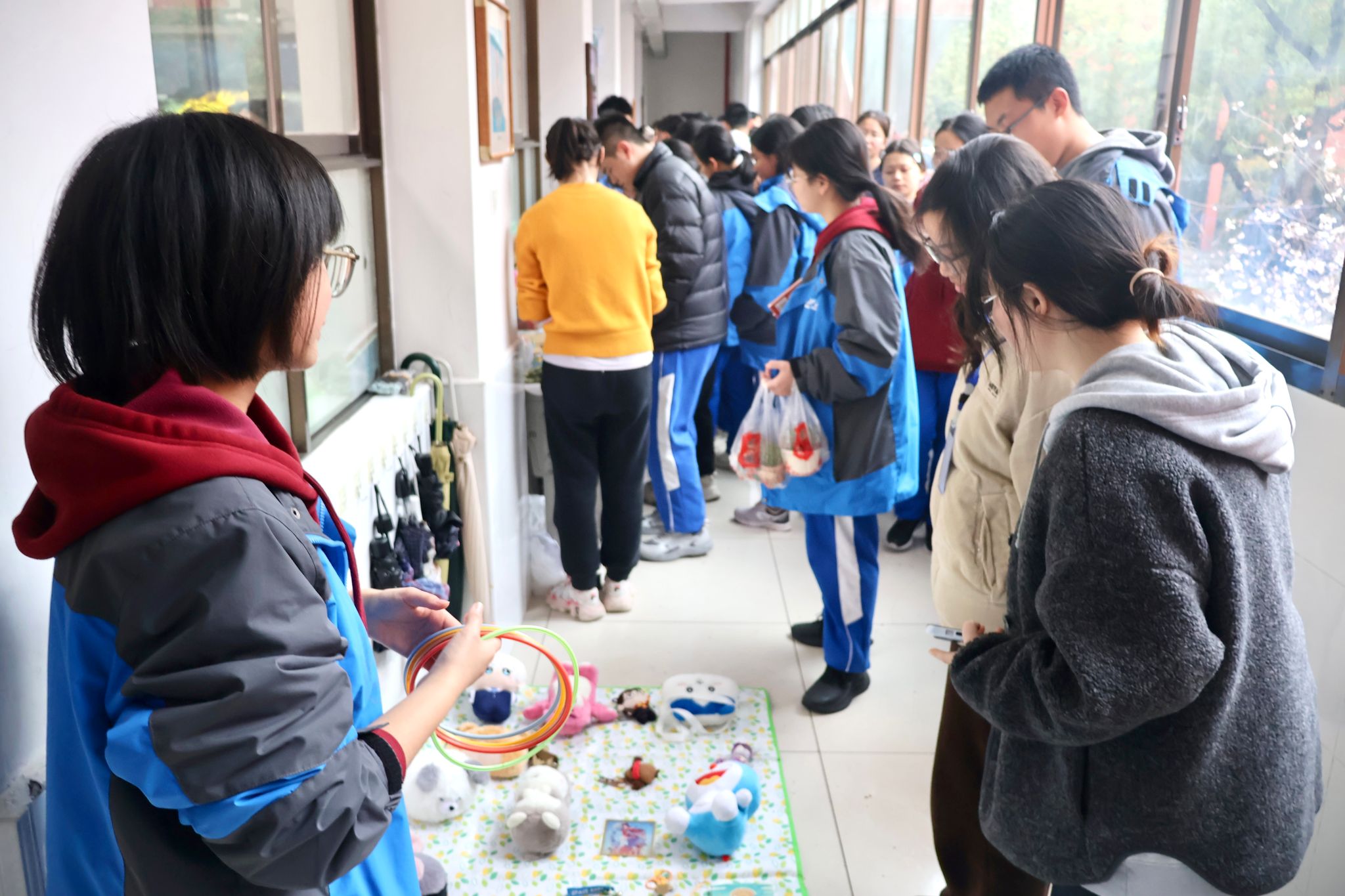 在活动组织过程中,实习队员积极协助指导老师开展爱心义卖活动,组织学生布置摊位,引导学生有序参与。活动结束后,实习队员组织学生打扫场地卫生,并着手布置次日考试的考场。从筹备到收尾,队员们在实践中逐步提升了活动统筹与沟通协调能力。