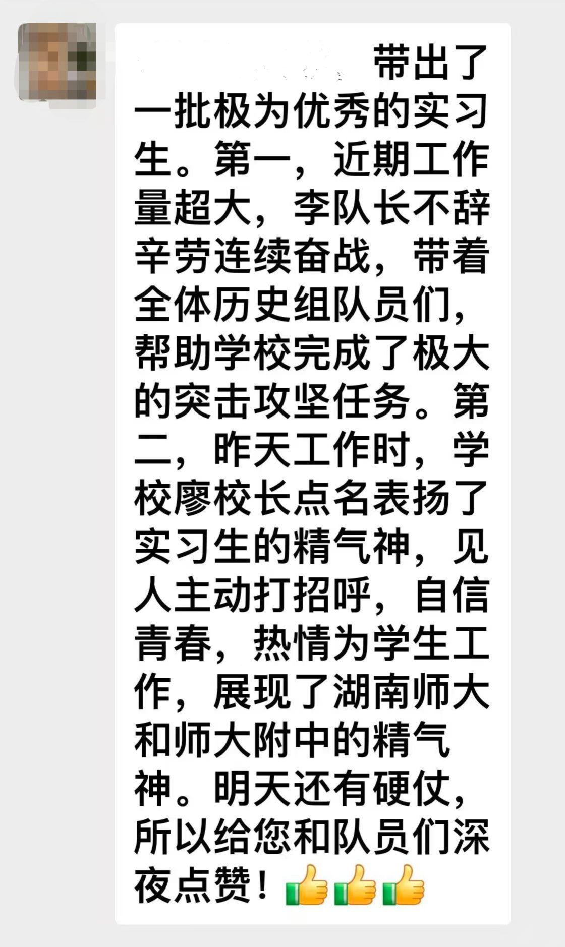 本周,湖南师范大学历史文化学院赴湖南师大附中实习队以饱满的热情完成了从学生到教师角色的初步转变。全体队员在教学技能与班级管理中积累了宝贵的实践经验,其扎实的表现赢得了附中指导教师的充分肯定。下一阶段,实习队将秉持严谨务实的工作作风,在巩固首周成果的基础上,聚焦“教学技能深化”与“班级管理精细化”两大方向,以实干精神推动教育教学实践能力再上新台阶。