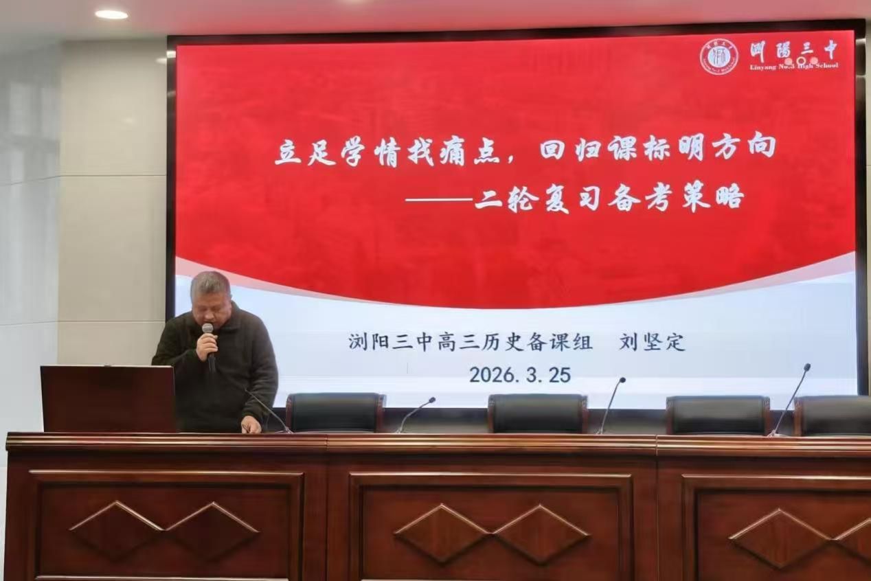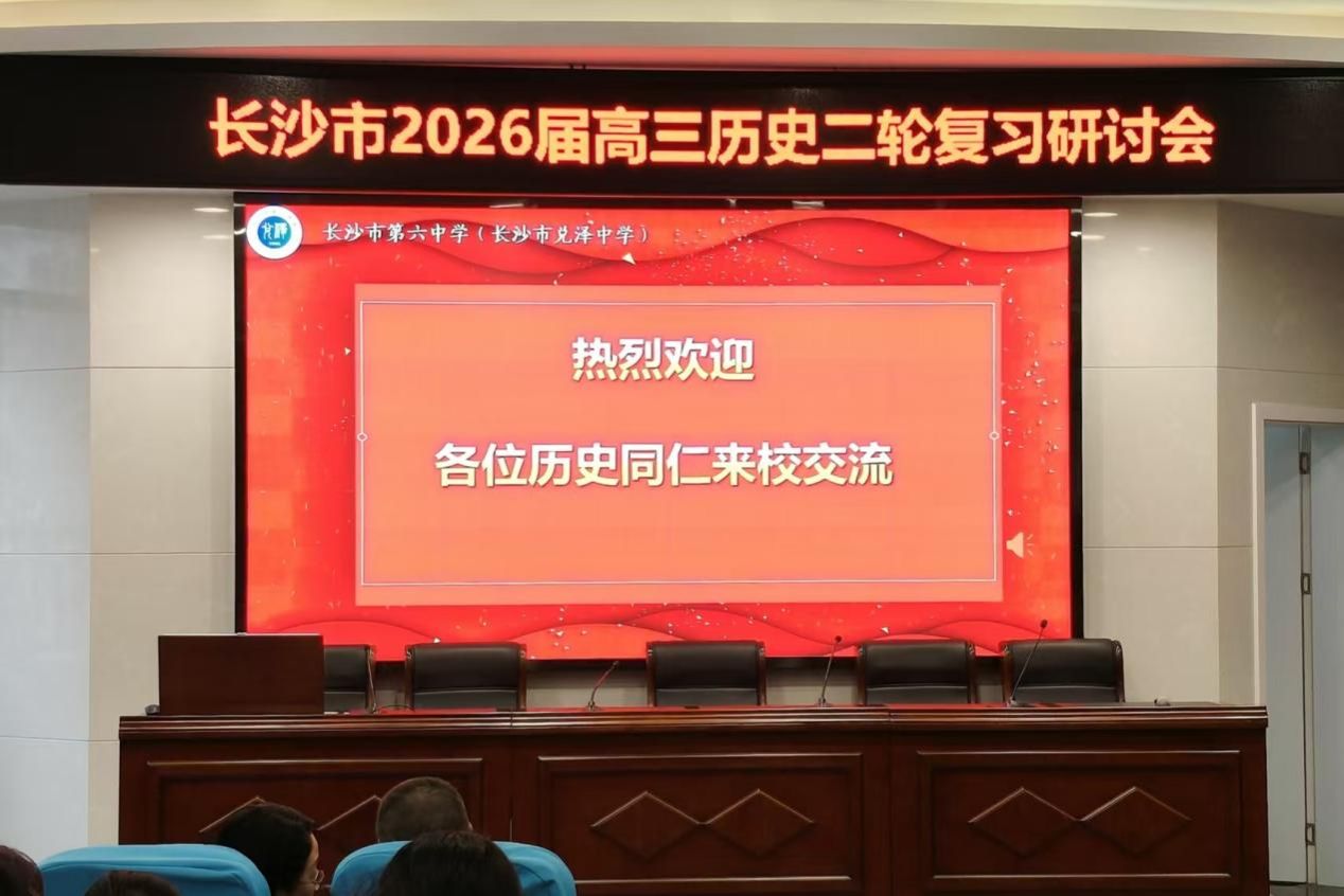 (通讯员 周双姣 许粲焓)3月25日,长沙市2026届高三历史二轮复习研讨会在长沙市第六中学图书馆二楼报告厅成功举办。本次会议由陈志荣主持,长沙市龚宇中学历史工作室团队全体成员、长沙市第六中学全体历史教师、市直区属其他学校历史教师,浏阳市、宁乡市、望城区、长沙县部分历史教师以及湖南师范大学历史文化学院实习教师参加了本次研讨会。