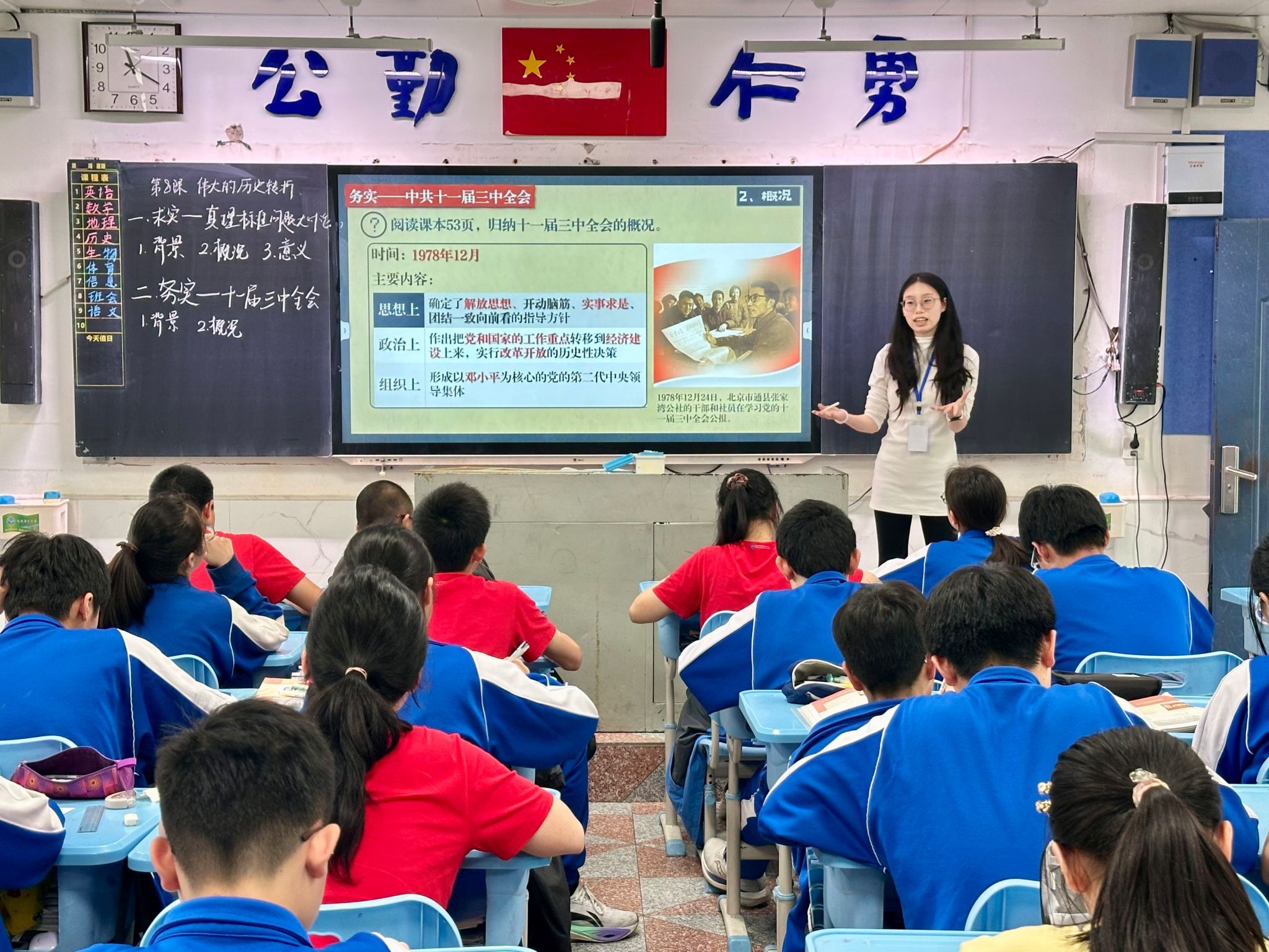 宋秀文聚焦“真理标准问题大讨论”等核心问题,以“求实—务实—落实”为逻辑线索,通过丰富的影像资料迅速带领学生进入特定历史情境,结合清晰的问题链设置与活动引导,让学生深刻认识到十一届三中全会在新中国发展史上的里程碑意义。