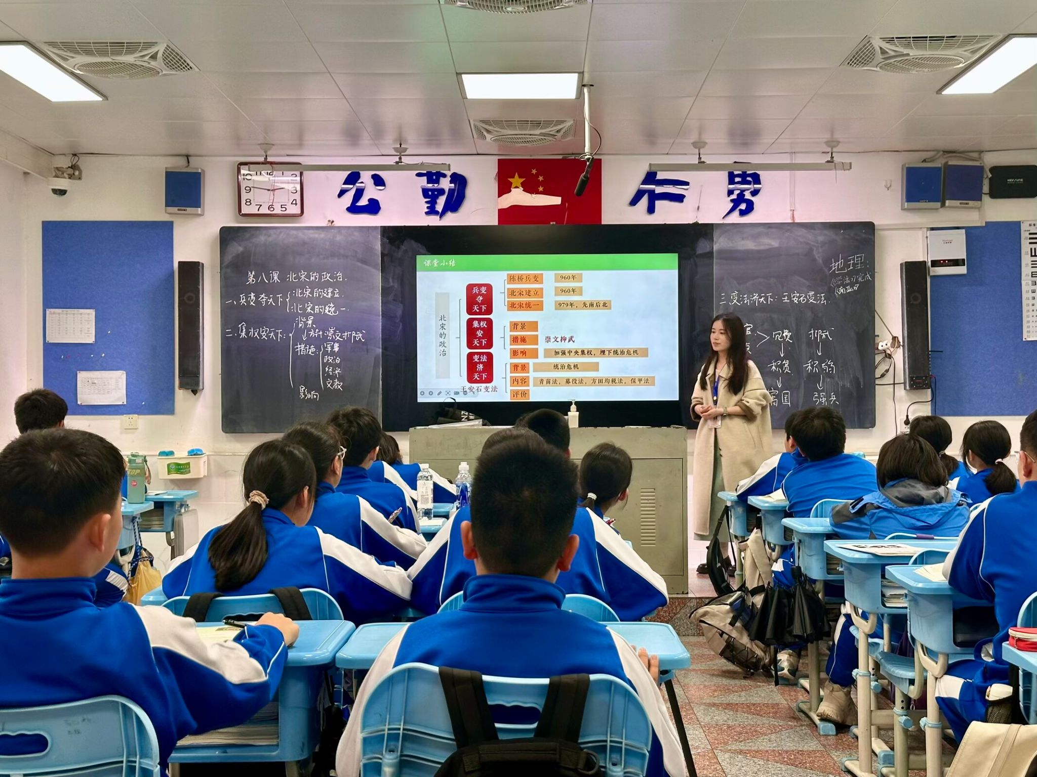 王心怡则以“宋初的中央集权与制度创新”为核心,结合北宋的政治制度与社会风貌,用贴近学生认知的案例与互动设计,带领学生探究北宋政治的特点与影响,课堂氛围轻松活泼,充分调动了学生的参与热情。